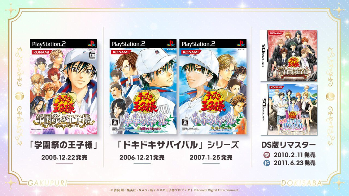 今日 ( 9/22 ) KONAMI 宣布,《網球王子》過去推出的兩款戀愛模擬遊戲《學園祭的王子們》(學プリ)與《心跳求生》(ドキサバ),將推出 20 週年紀念重製版 將正式推出,並加上全新繪製的插圖!將會登上 Steam 與 Switch / Switch 2 平台。