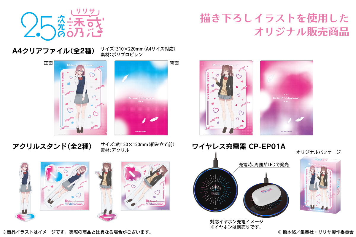 除了耳機本體之外,還會同步推出 A4 透明資料夾、壓克力立牌跟專屬無線充電器等周邊商品。也都是本次聯名特別繪製的人物插圖,也都有戴上耳機。