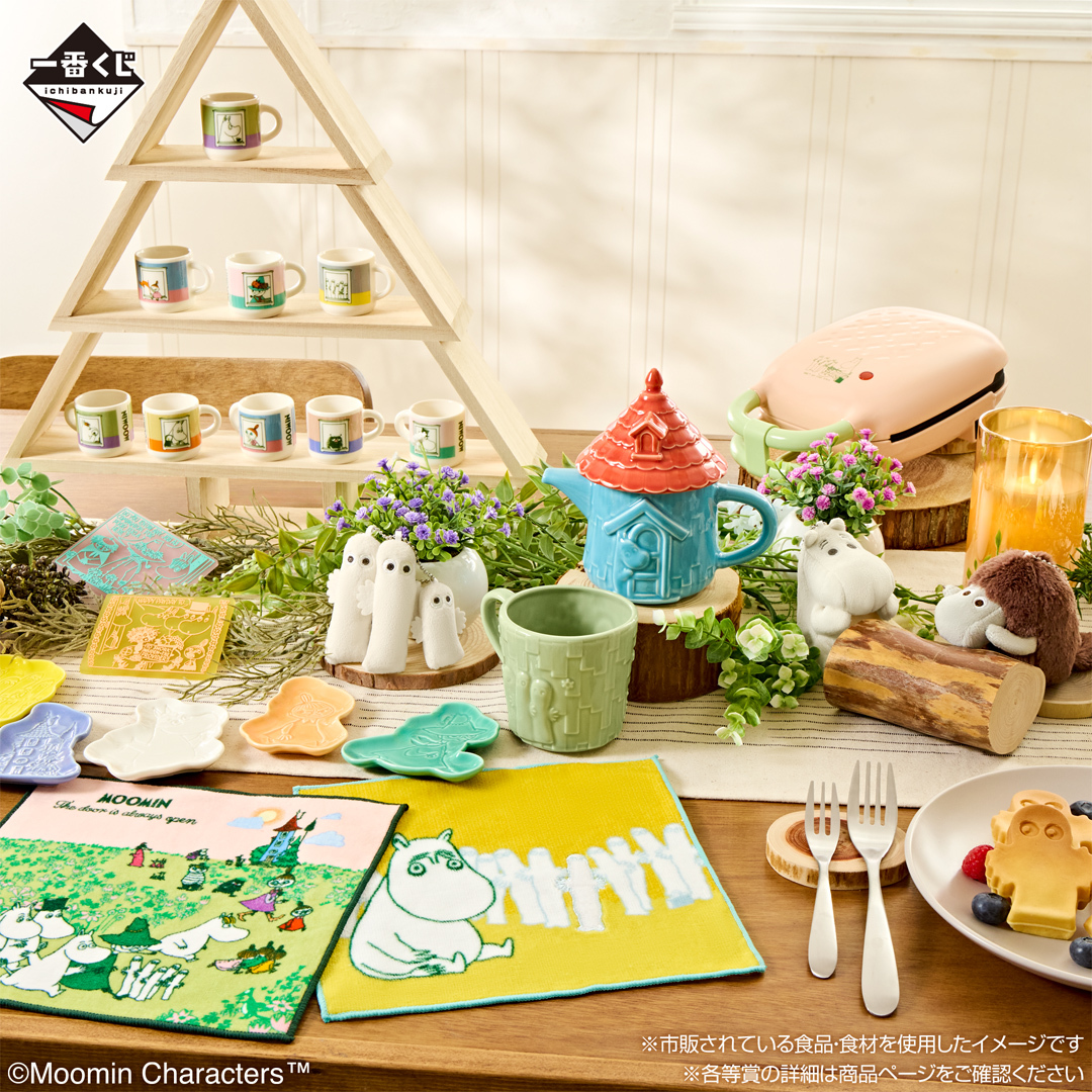 「一番賞 姆明~ The door is always open~」,將劇中可愛的角色們融入設計,推出A~H賞+最後賞的豐富獎品!A賞為可以製作出溜溜造型鬆餅的「溜溜鬆餅機」!而B賞與C賞則是可以成對使用的「姆明屋茶壺」、「80周年紀念馬克杯」溫和的色澤與浮雕設計相當有質感~另外還有D賞「布偶吊飾」、E賞「毛巾」、F賞「漫畫透明橡膠杯墊」、G賞「大家一起收集盤子」、H賞「迷你馬克杯」,最後賞則是與A賞同款的「溜溜鬆餅機」。