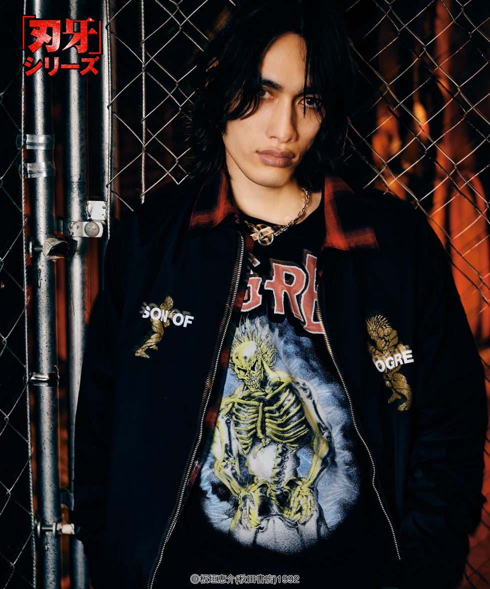 本次以全新的作品繪圖結合 glamb 的設計展現出截然不同的風貌,推出包含 : 布勞森外套、短 T與薄長 T ,結合《刃牙》登場人物的硬派氣息融進街頭風,融合「金屬樂團T」、「重機騎士」等強烈風格,再加上他們招牌的藝術感插畫,打造具濃濃復古感的潮流單品。