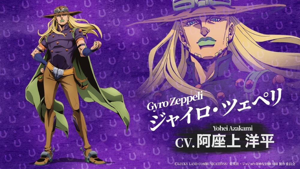 配音陣容方面,主角喬尼·喬斯達由坂田將吾飾演,與他並肩作戰的神祕亡命之徒傑洛·齊貝林則由阿座上洋平配音。