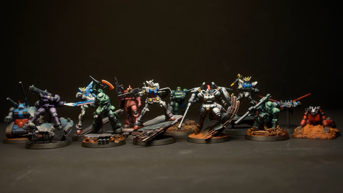 《GUNDAM ASSEMBLE》是一款以大約 5 公分高的鋼彈模型為棋子的桌遊,跟《GUNDAM CARD GAME》合作的版本已經在 7 月率先推出。這位作家直接把全套 12 台機體從日本買回來,開始改造計畫。