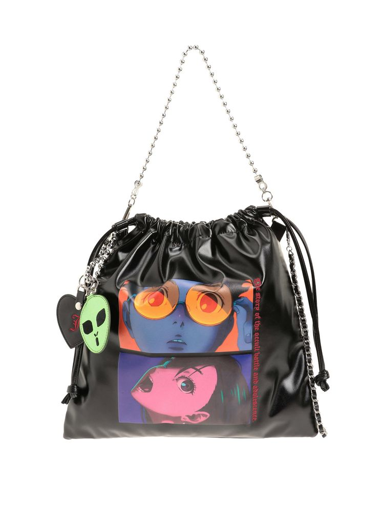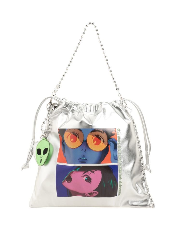 推出三款色系可選,包上印有動畫場景,可以肩背或斜背,大小適中日常剛剛好,還附上原創外星人吊飾。