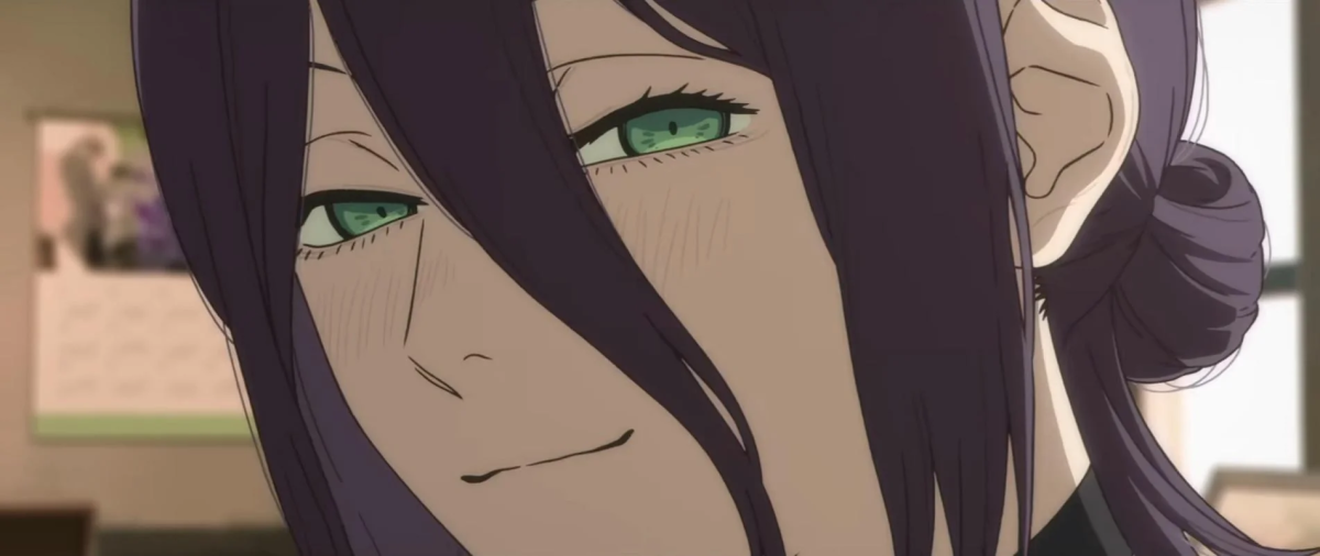 米津玄師 : 蕾潔的塑造上給人那種「暈頭轉向的快感」,能讓人暈得很舒服,被耍得心甘情願。她臉頰泛紅、抬頭看著淀治,帶點挑逗意味,但同時又不斷給予好感的暗示。像淀治這種人當然會被騙啊。而且「想被騙」這件事在戀愛裡其實很重要。蕾潔很俏皮又迷人,但你\永遠猜不到她心裡真正想什麼,這種神秘感讓人更著迷。她就是那種能徹底打亂你感官的人。