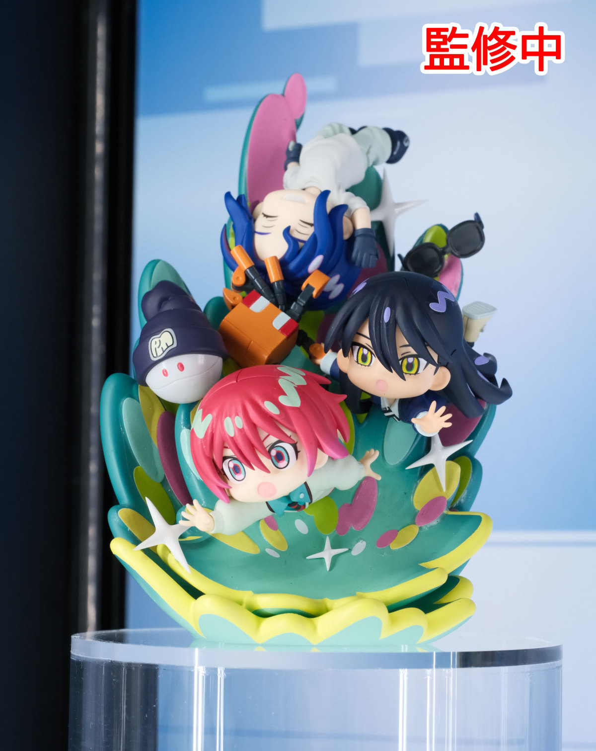 「FigUnity 機動戰士鋼彈GQuuuuuuX」將瑪秋、涅安、修司三位主角以及機械伙伴哈囉、貢奇都製作成可愛的低頭身 Q 版造型,同時使用和動畫相同的華麗色彩與台座造型,表現他們徜徉在「閃亮亮」中的可愛模樣。