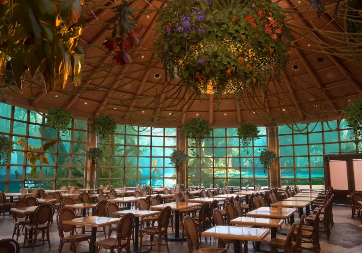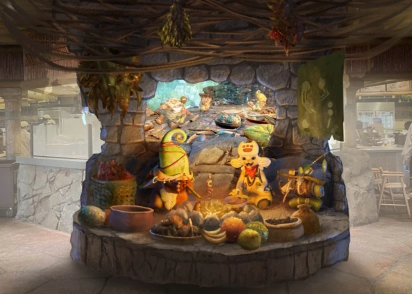 餐廳會重現「緋之森」裡的莫利巴據點,裡面有熱鬧的獸人族莫利巴和最可靠的夥伴「隨從艾路貓」在營火旁迎接大家,各位來參加的遊客就像化身獵人,參加「莫利巴的宴會」。