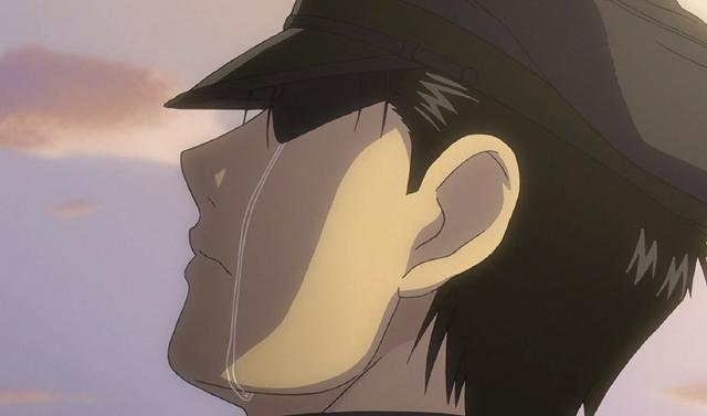 相信看過《鋼之鍊金術師》的朋友對這幕馬斯坦古那句「下雨了」印象深刻,出自第4集,第16話。馬斯坦古的摯友部下被殺害,他抬頭說「糟了,下雨了」。旁邊的莉莎回:「咦?沒下雨啊?」,馬斯坦古接著說:「不,這是雨。」