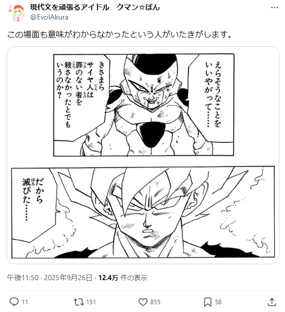 從「無言回家」到「下雨了」再到悟空與弗利沙的對話,不少日本網友也指出,即使是經典名場面,仍有人因語境、比喻或反語而無法立刻理解,或許這也是日語表達方式的特色,甚至連日本自己人都看不懂,更別說國外的人士,。
