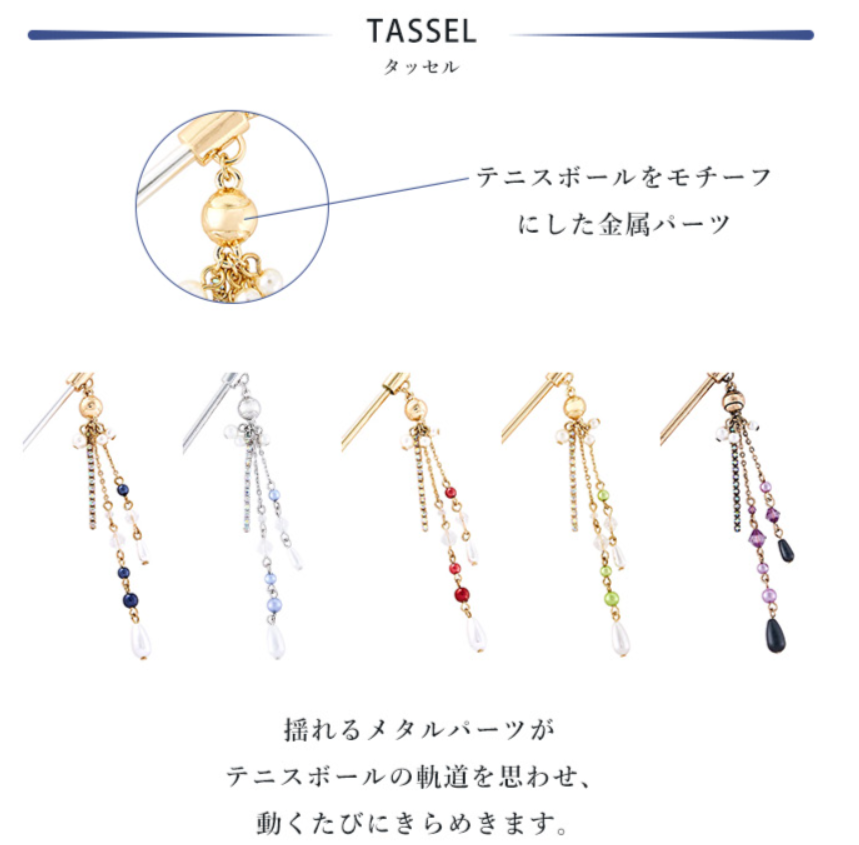 每一款學校款式,都配有網球拍造型的簪,搭配對應學校的色系寶石裝飾,與簪上的華麗吊飾,以及不同學校的皇冠造型,風格格外出眾。