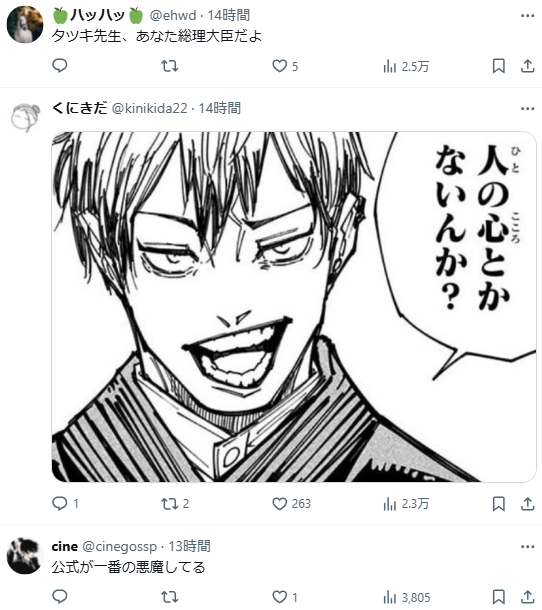 像這種說藤本樹根本是惡魔或沒有人性的吐槽也層出不窮...