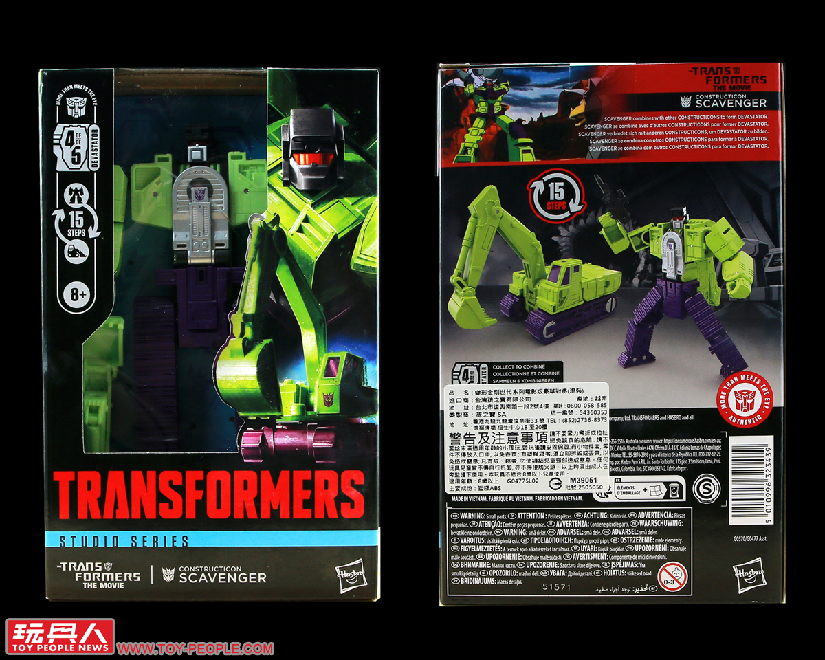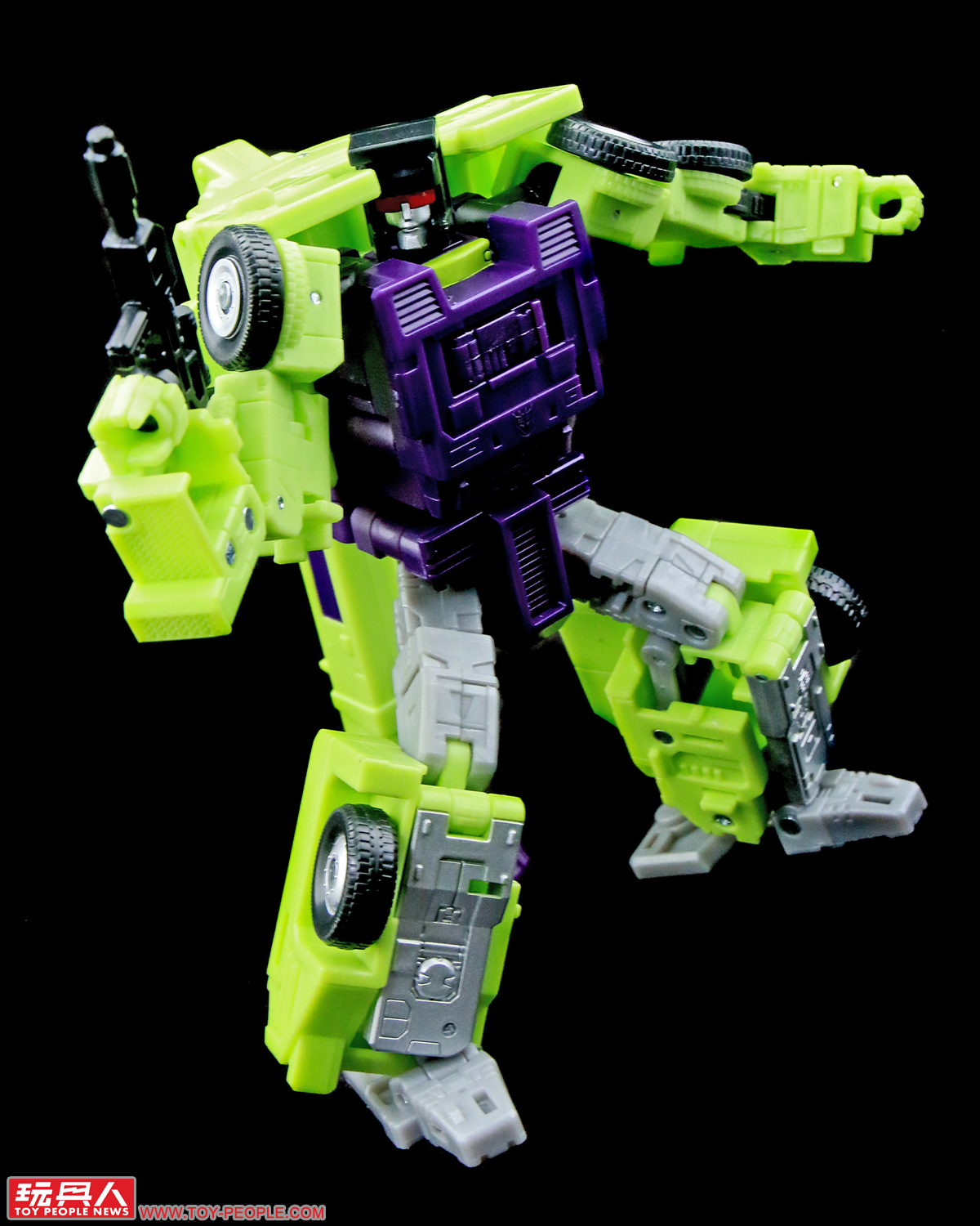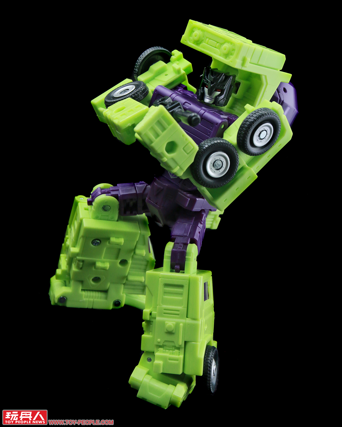▼「清道夫」(Scavenger),變形為挖土機,團隊中的挖掘者與探測兵,渴望被注目被重視的自卑者,時常為了博取旁人贊同而有做出異常積極的表現,雖然最後總是徒勞無功。本次採用了豪華戰將級來加以重製,大合體時為蹂躪者右臂擔當。