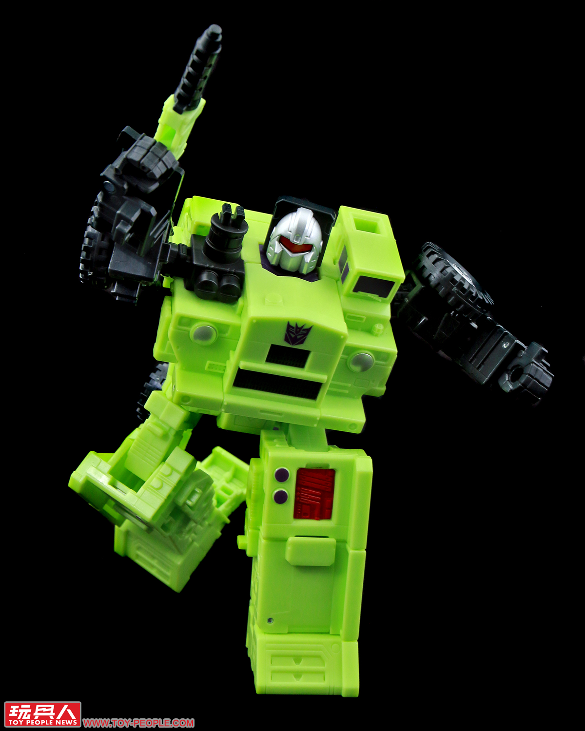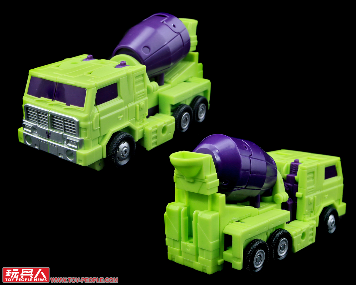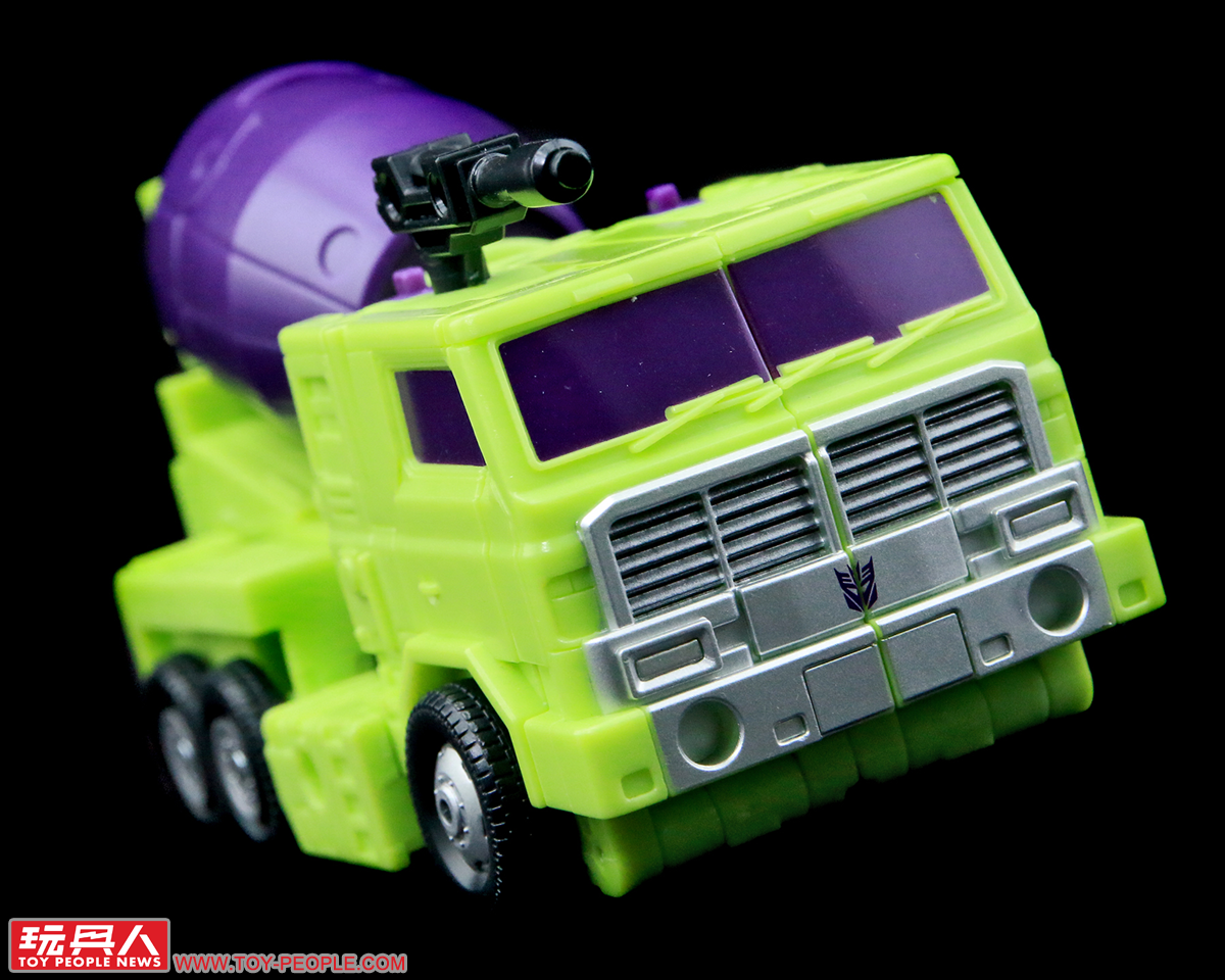 ▼「攪拌器」(Mixmaster),變形為混擬土攪拌車,個性癲狂又怪奇的化學工程師,時常在自己的攪拌槽內進行不為人知的化學混合實驗,其危險的特性可說是同僚都敬而遠之。本次是以巡弋戰將級收錄,合體時作為蹂躪者的左腿。