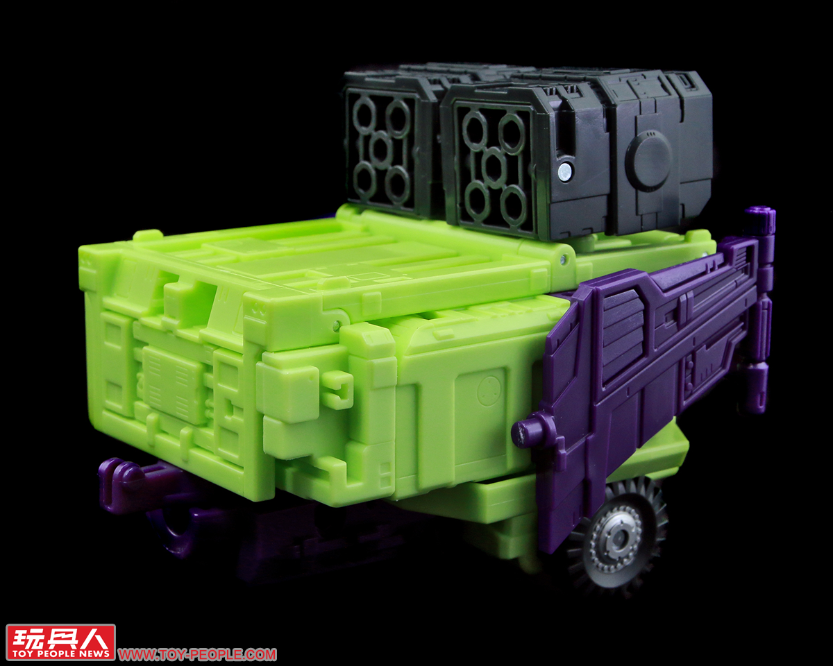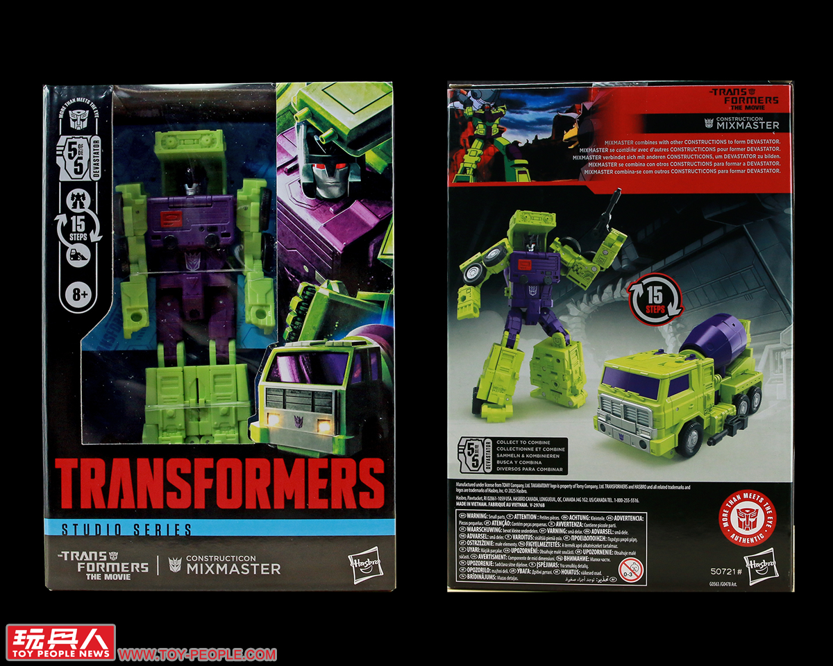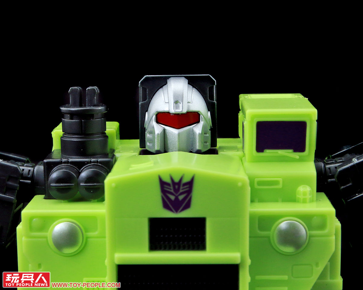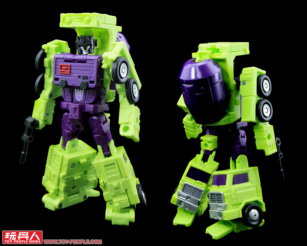 ▼「攪拌器」(Mixmaster),變形為混擬土攪拌車,個性癲狂又怪奇的化學工程師,時常在自己的攪拌槽內進行不為人知的化學混合實驗,其危險的特性可說是同僚都敬而遠之。本次是以巡弋戰將級收錄,合體時作為蹂躪者的左腿。
