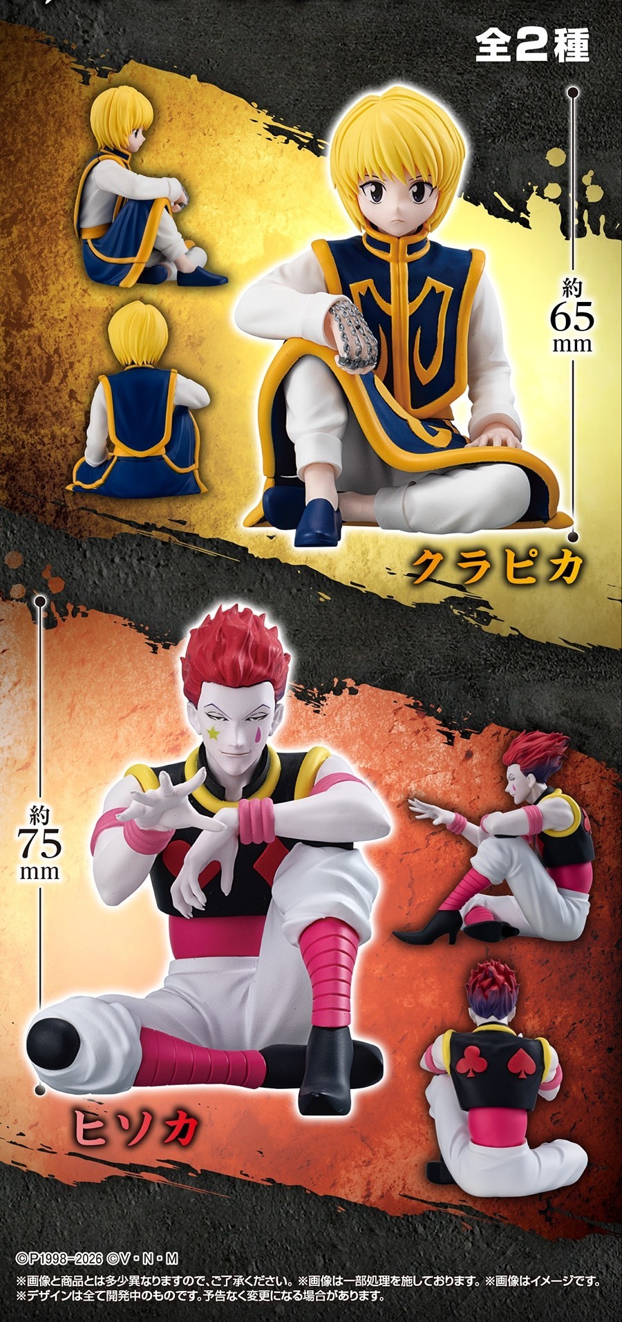 「GASHAPON HUNTER×HUNTER 坐下隊 REAL 2」轉蛋,繼前一彈的「坐下隊 REAL 1」後,再次採用較貼近原作的真實風格,在 6.5 ~ 7.5 公分的小尺寸中再現本次的主角:酷拉皮卡、西索帥氣的坐姿造型!刻畫出特徵的服裝細節,尤其是酷拉皮卡標誌性的手指鎖鏈~西索充滿邪氣的表情也很迷人~
