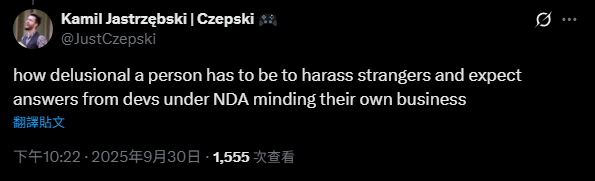 有網友怒斥:「這傢伙應該因騷擾被逮捕。」也有人指出:「怎麼會有人妄想從簽了保密協議的開發者口中套出答案?」
