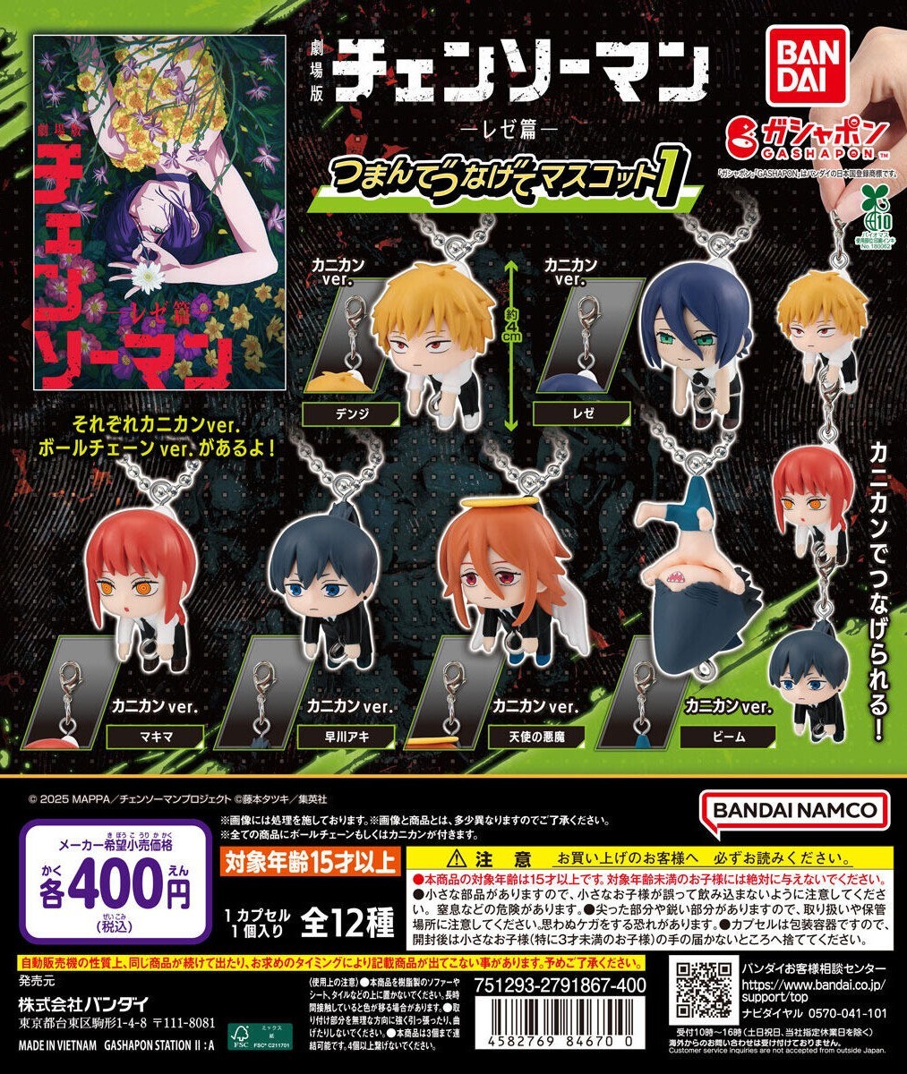 日本萬代公司旗下轉蛋事業部 GASHAPON 的「拎起來吊飾」系列,將推出超人氣的《劇場版鏈鋸人 蕾潔篇》主題商品:「劇場版鏈鋸人 蕾潔篇拎起來吊飾1」轉蛋!共有 12 款,一轉參考售價為 400 日圓,預計將於 2025 年 10 月開轉~