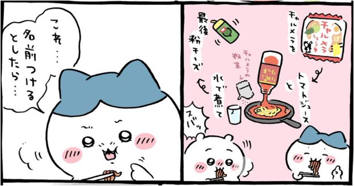 《吉伊卡哇》官方X今日貼出一則六格漫畫,內容是小八分享自己「最近想到的吃法」,把明星泡麵「チャルメラ」改良成特別料理。貼文一出馬上引發討論,大家都喊「好想學」「看起來超讚」。