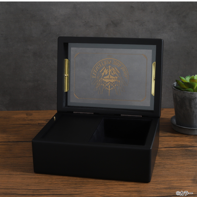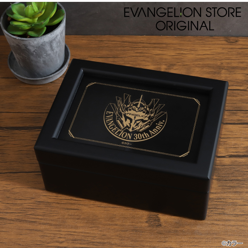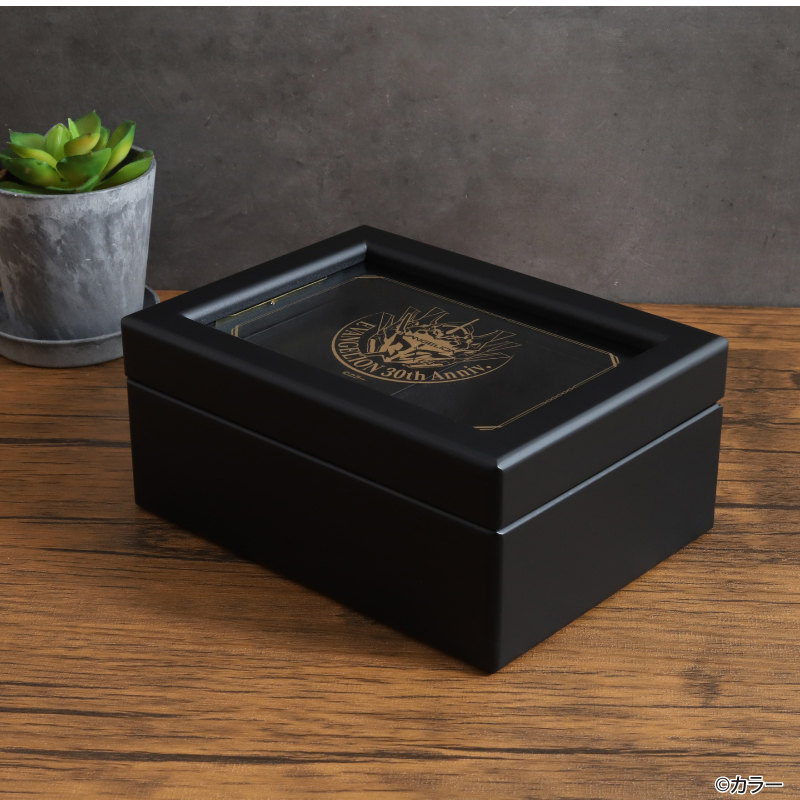 音樂盒本體以天然木頭製成,大小約約 15×11×6.5 公分。盒蓋的透明玻璃上印有金色的《新世紀福音戰士》30周年紀念 Logo,打開之後,就會播放《新世紀福音戰士》的經典歌曲〈殘酷天使的行動綱領〉旋律。作為 EVA 粉絲的紀念收藏來說,不論使用或放置當作裝飾都很具意義。