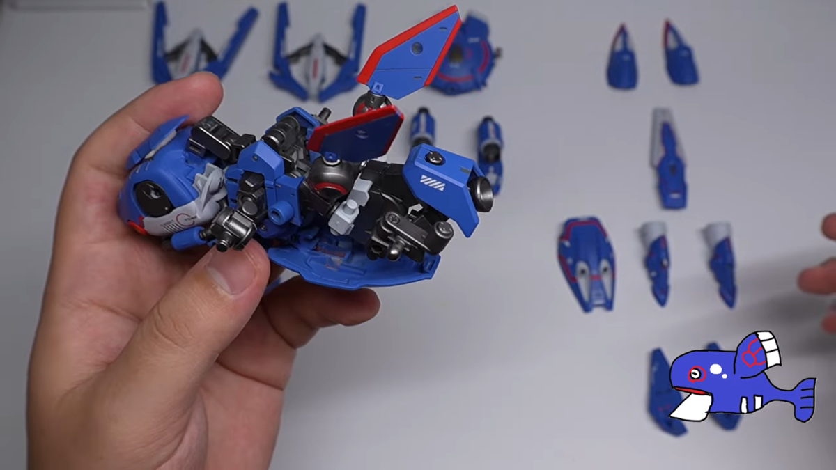 這次他又推出新作,同樣將數個鋼普拉、30MS 套件,重新組裝上色解構再結合,製作成豐緣地區的傳說寶可夢「蓋歐卡」,巧妙的靈感搭配製作成品的出色效果,讓人再次對他的創意給予讚賞。