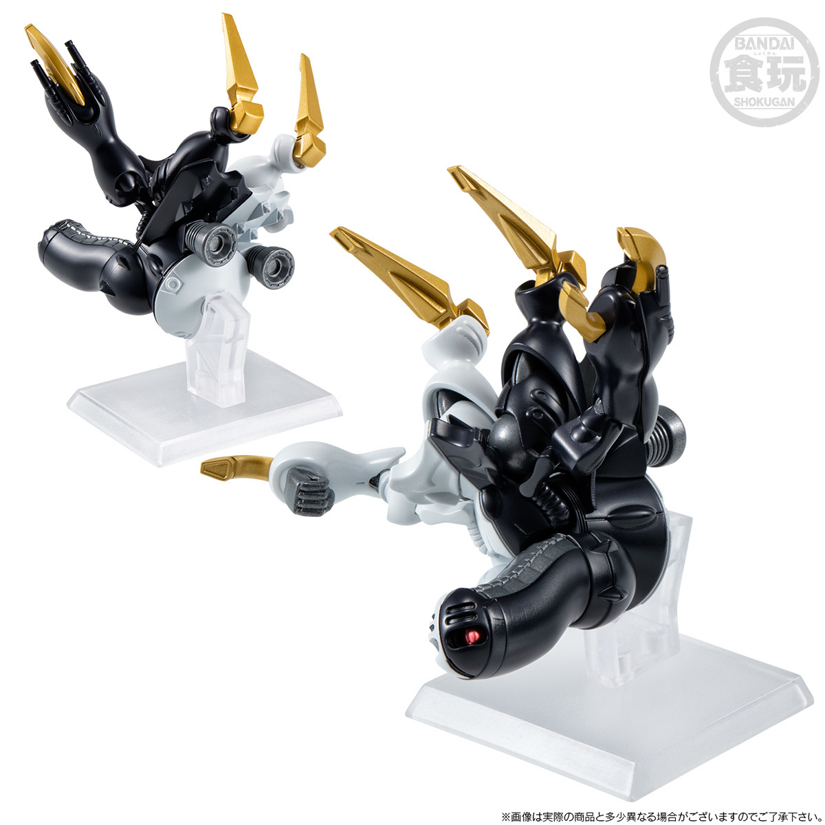 「FW GUNDAM CONVERGE CORE 迪奇托斯套組」運用完全新規造型製作卡利斯托兄弟所駕駛的兩架迪奇托斯,在低頭身比例下細膩再現異形般的外觀設計、黑白分明的機體配色,並附有光束斧武裝。不僅如此,商品還個別製作出兩機變形後巨爪般的的 MA 形態,並能換件再現手指尖端展開的光束刃,等同是一次收錄四駕機體的豪華套組。