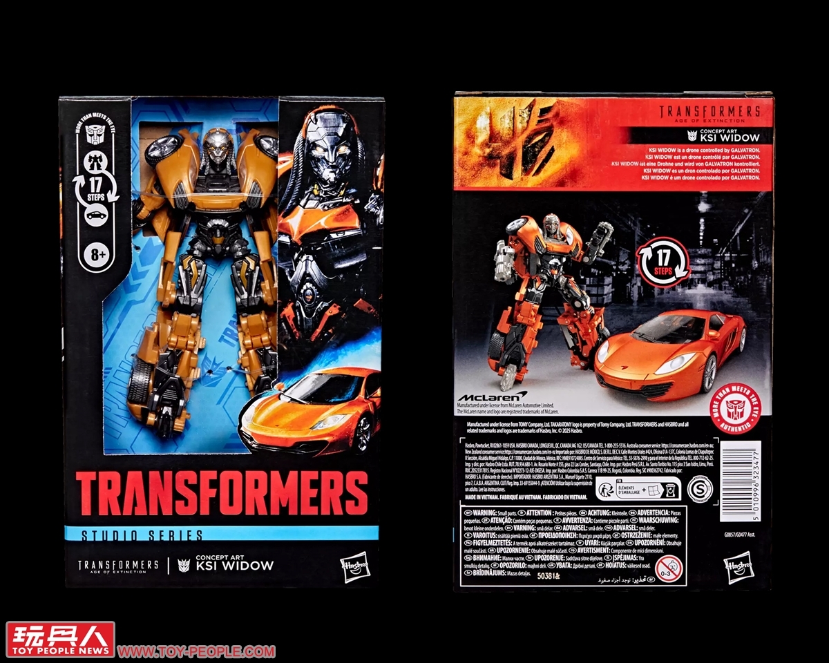 ▼「KSI寡婦」(KSI Widow),取材自2014年上映的《變形金剛4:絕跡重生》(Transformers: Age of Extinction),為KSI人工製造出的變形金剛,本體沒有意識的無人機,後來被格威隆(Galvatron)控制並成為其軍團的一員。如果大家對她沒什麼印象,那是非常正常的,因為本次的玩具實為出自電影的美術概念稿,並將這位其實在正片中沒有機會登場的人物予以立體化,可從機器人變形為麥拉倫(McLaren)的MP4-12C超級跑車。