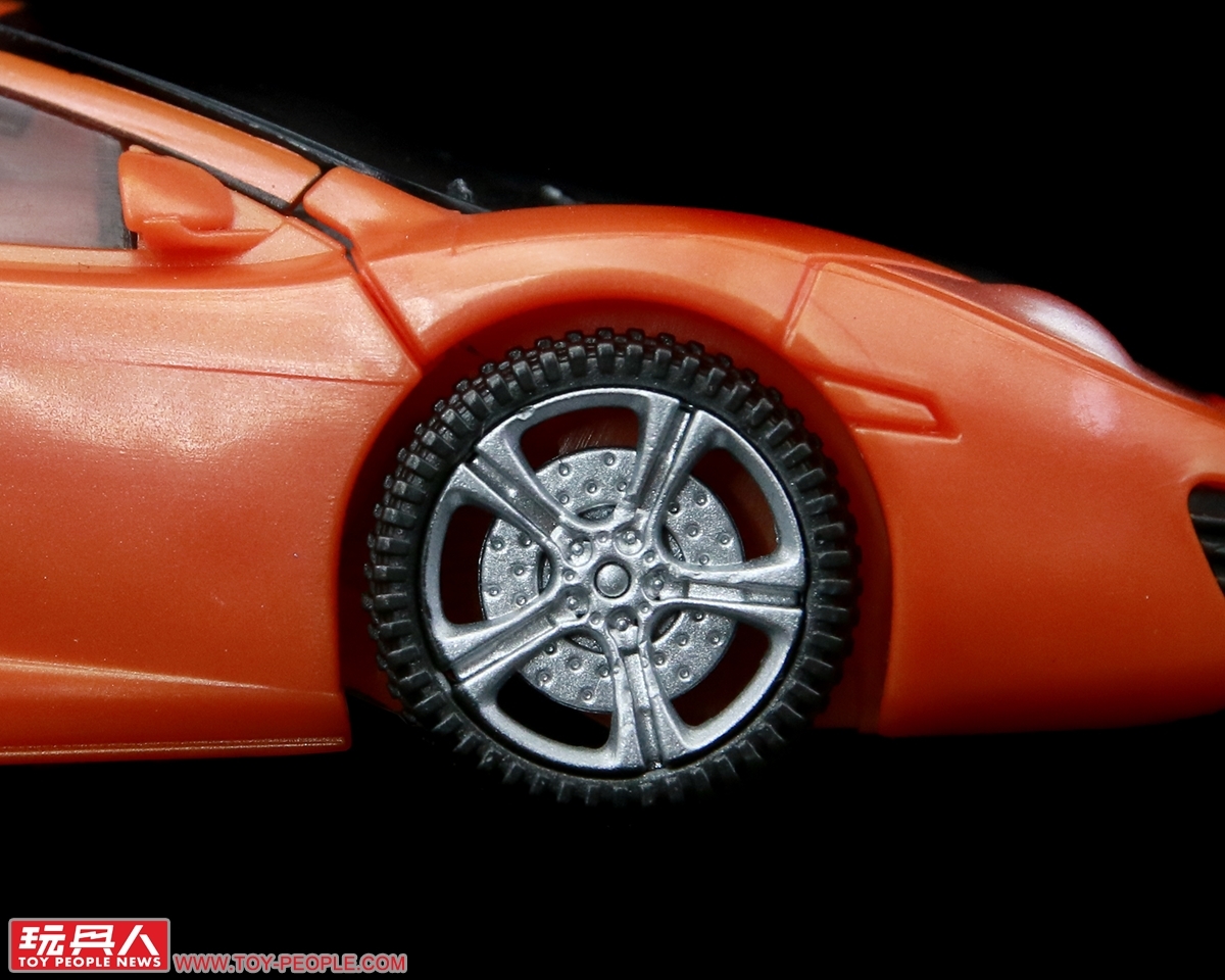 ▼超跑模式,有著麥拉倫原廠的授權,車型當然也是絕對的還原。值得一提的是從載具變形為機器人時腿部的零件摺疊收納,不禁令人想到領袖之證(Transformers Prime)小兵(Vehicons)的變形機構。