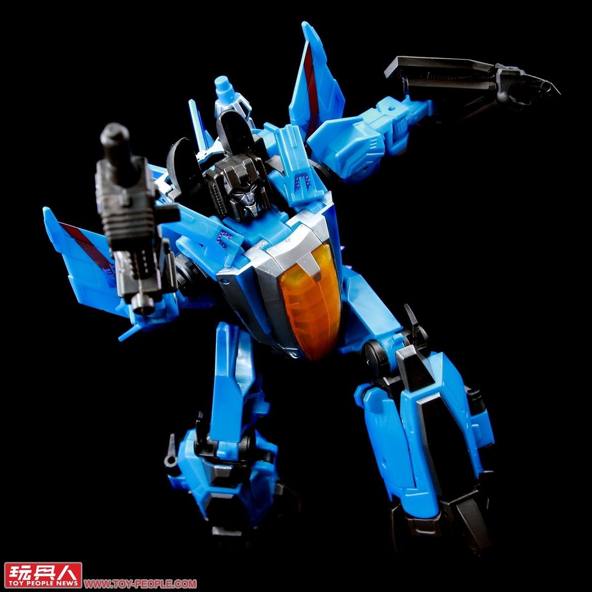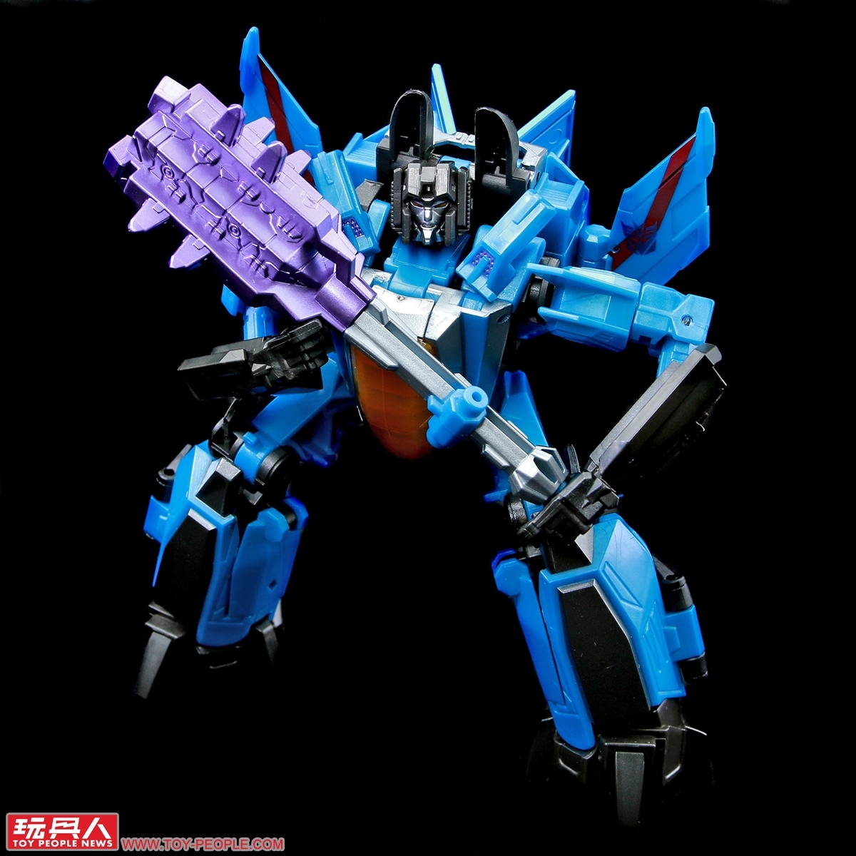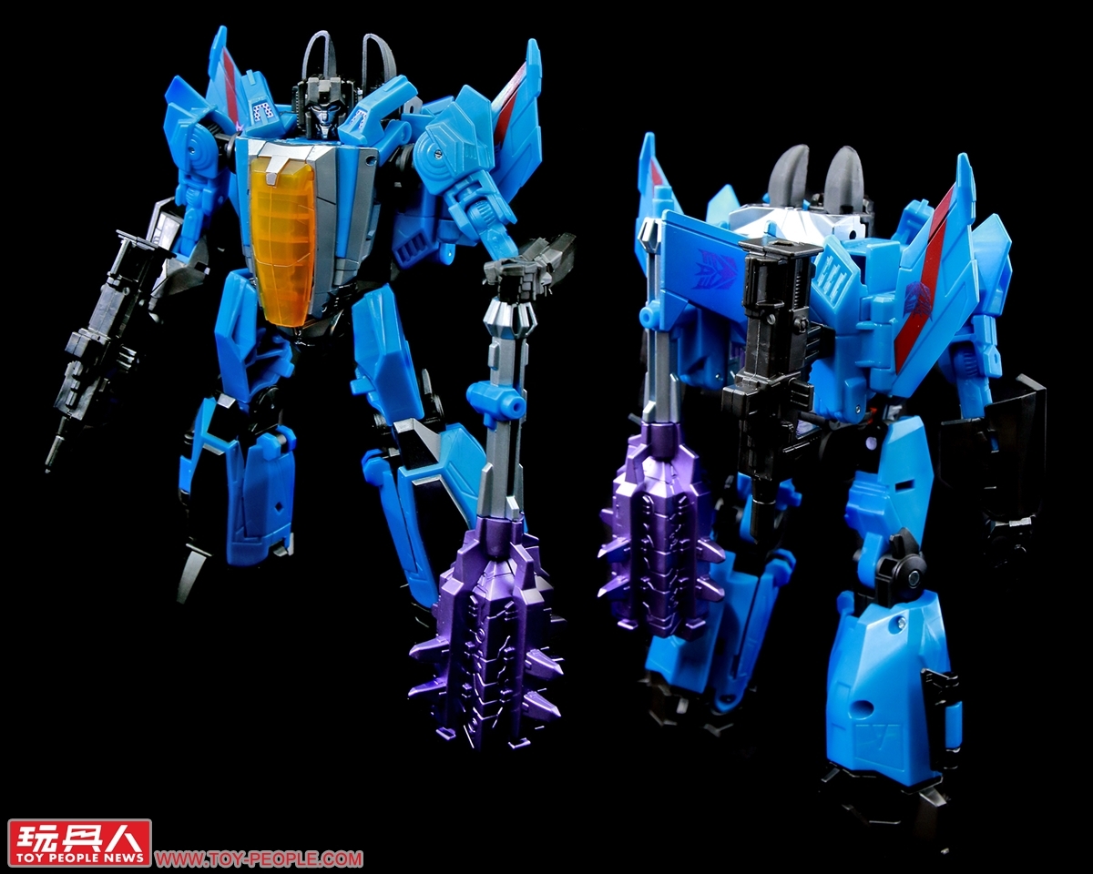 ▼「裂雷」(Thundercracker),出自遊戲《變形金剛:賽博坦之戰》(Transformers: War For Cybertron)的狂派巡獵者(Seekers)成員,擅長在空中截殺所有映在他眼廉的博派(Autobots)。這次的版本毫無疑問,同樣是將過往發售過的天王星進行重塗而生,附屬了巨鎚與中子突擊步槍(Neutron Assault Rifle)作為武器配件。