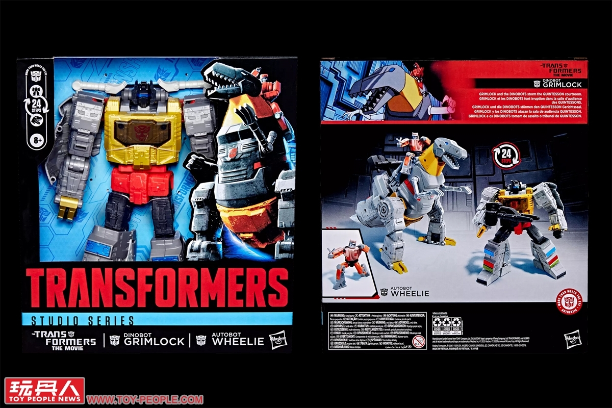 ▼「鋼鎖與威利」(Grimlock & Wheelie):取材自1986年的《變形金剛大電影》(The Transformers: The Movie),博派恐龍金剛(Dinobots)的隊長,由科學家輪傑(Wheeljack)依據地球的恐龍化石所打造,雖然性格好戰粗魯野蠻,但也意外地有著充滿孩子氣的一面,恰好與孤身一人的生存者、同時也是個押韻達人的年少博派威利成為絕佳的搭檔,兩人在昆特紗星(Quintessa)相遇後結為莫逆。這次的版本乃是更新外盒的再販,內容物的塗裝並未更動,當時錯過G1鋼鎖的朋友這次可別再錯過囉!