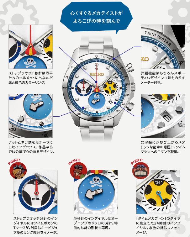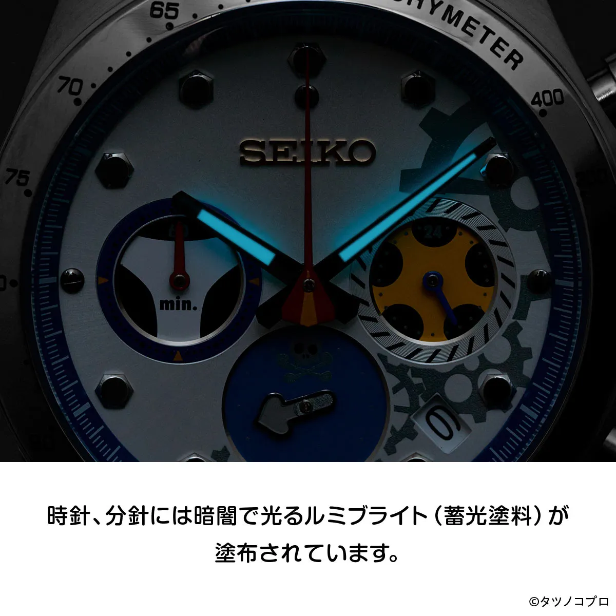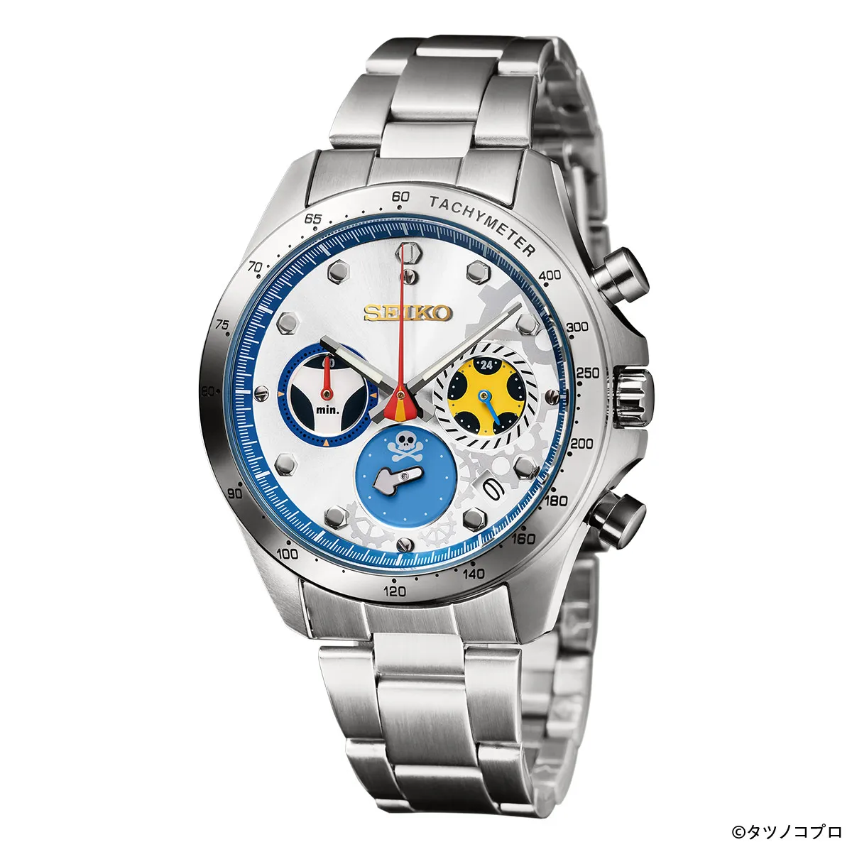 這次與 SEIKO 攜手合作,推出充滿懷舊氛圍與機械浪漫的紀念錶。設計靈感來自作品中印象深刻的開場動畫與各種機械,整體造型既復古又具收藏價值。