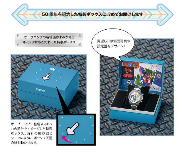 為呼應動畫的首播年份,本款腕錶全球限量1975副,背面刻有專屬序號與50週年紀念Logo。