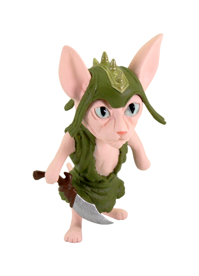 本作除了在貓咪的品種、毛色部分有著不錯的表現之外,服裝與配備也相當有感!像是主角茶虎貓的初始防具組合、騎士的華麗盔甲與鑲上藍寶石的長劍、無毛+哥布林形象的有趣結合,以及彷彿小型 Boss 一般、半獸人異國短毛貓頭頂上的超小頭盔,越看越可愛!尺寸部分約落在 5〜6.5 公分,仔細一看,反派那邊似乎還有大魔王啊!希望會推出後續。