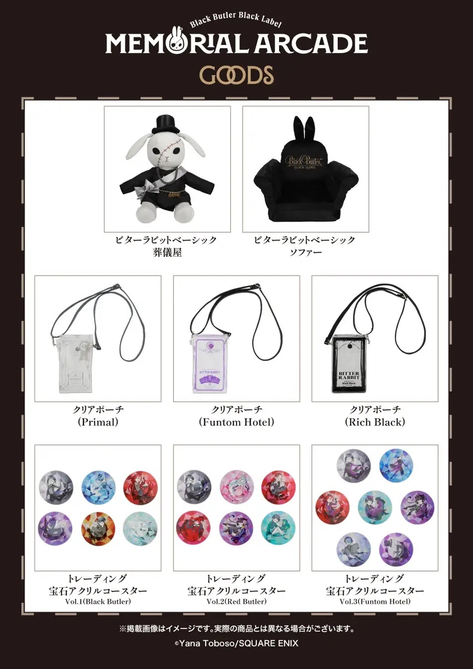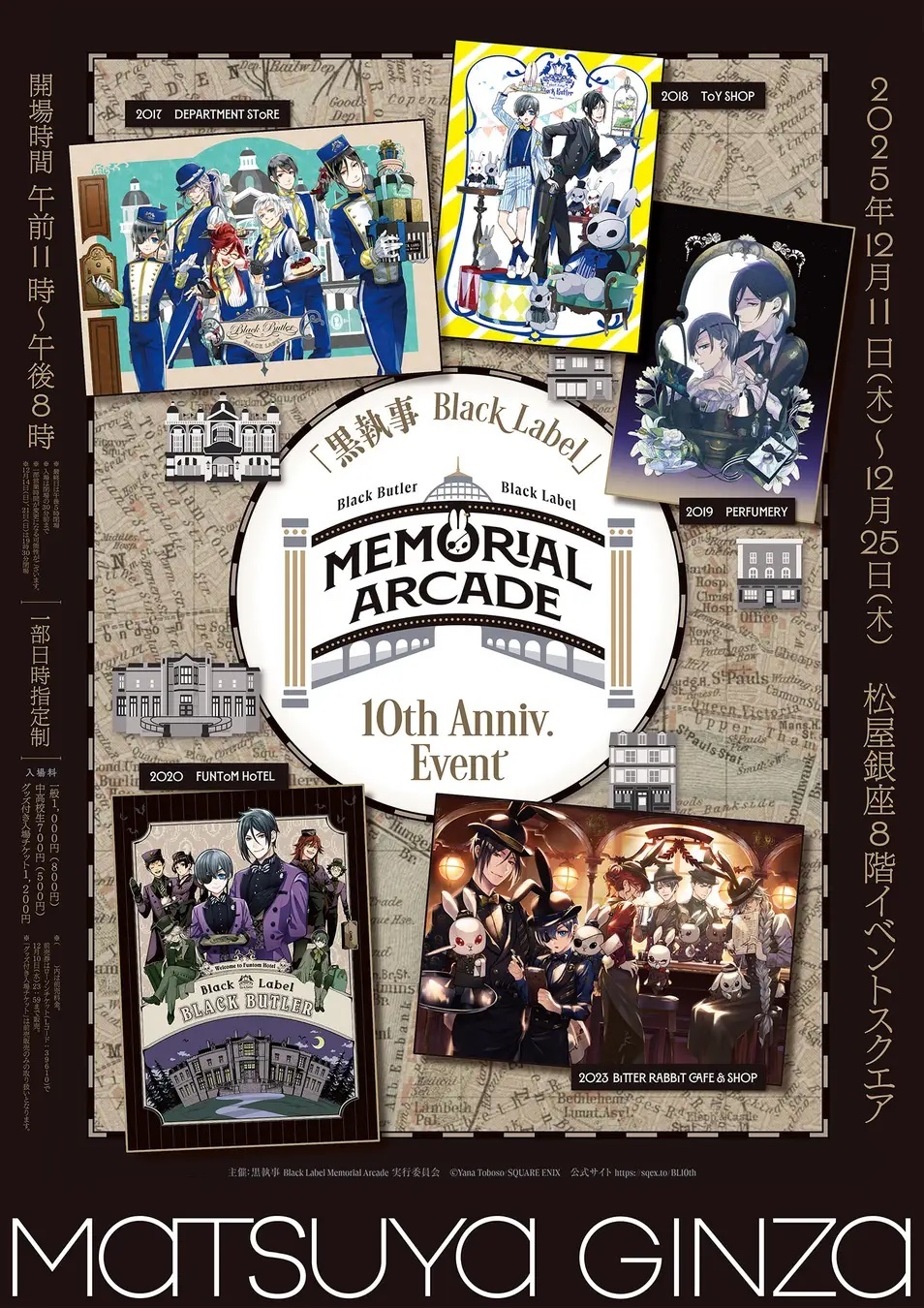 為歡慶品牌十週年,官方特別策劃「黑執事 Black Label Memorial Arcade」紀念活動,預計自2025年12月起,於東京、愛知及大阪等地接力登場!同時也搶先公開最新商品,例如品牌吉祥物「彼得兔」的新作,還有其他多款運用經典視覺設計的全新週邊,完整陣容請見下圖: