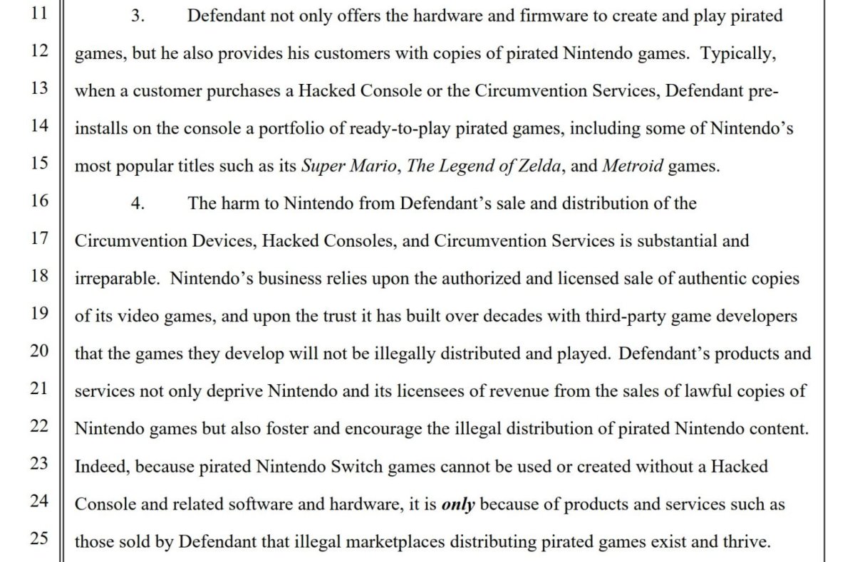 報導指出,任天堂於2024年3月聯繫Williams要求他立即關閉盜版站點,對方雖承認行為違法,卻拒絕停止。任天堂隨後於同年6月提告,指控他多項版權侵權與販售破解工具。