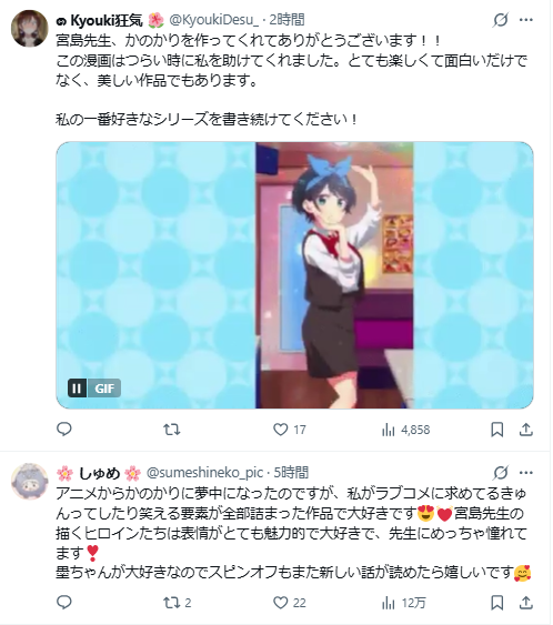 當然底下也湧入不少粉絲給予宮島老師鼓勵,希望不要被黑粉的言論所影響,好好的畫自己想要的故事,正向的回應還是不少。