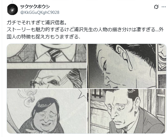 網友指出浦澤老師角色臉永遠不撞臉,每個人都有靈魂,甚至美型角色也能駕馭,平凡老醜的角色也不會沒特色。