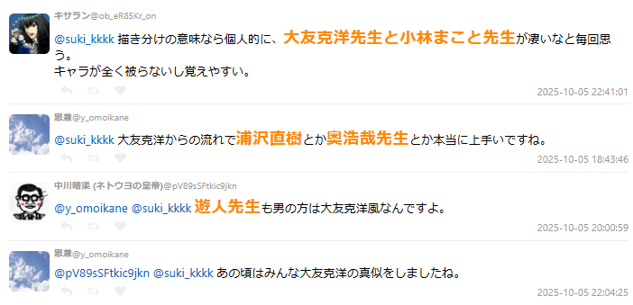 網友認為這幾個漫畫家,畫風都非常有辨識度外,筆下角色一眼就能分辨,不論美醜都能在作品展現得宜,是整個世代的教科書。