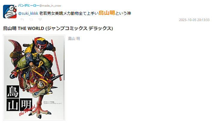 網友認為像是鳥山明,就是能畫美、醜、老、年輕、機械、動物甚至抽象的怪物,幾乎無所不能。