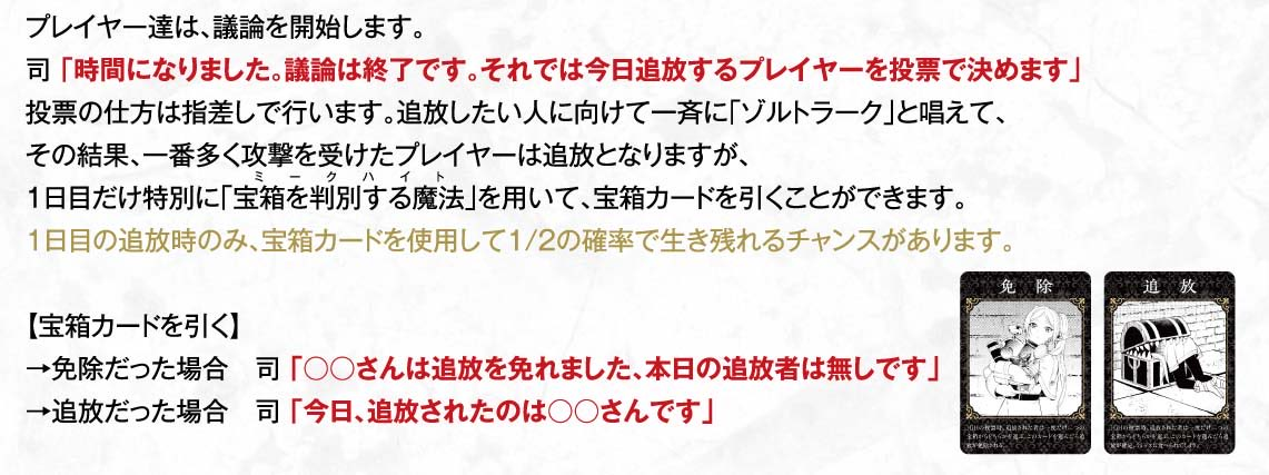 玩法設定是在人類陣營中潛藏著能用言語欺騙眾人的魔族,玩家要找出他們,並以芙莉蓮的研究並普及了魔族開發的「殺人魔法」將其放逐!