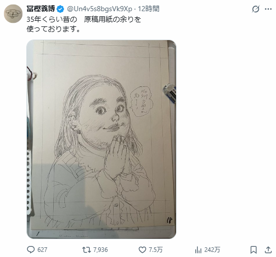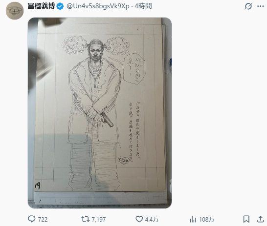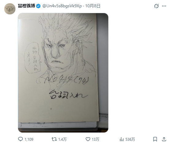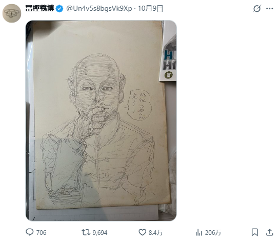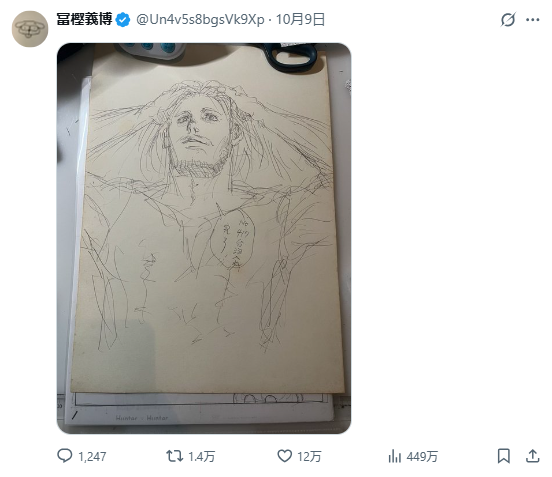 自從停止更新X八個月後,八月下旬起冨樫義博開始更新發文,頻率雖然不高,但也讓人看到冨樫老師仍在工作,近期上傳了一張用「35年前剩下的原稿紙」繪製的插圖,持續更新工作進度,引發粉絲熱烈討論。