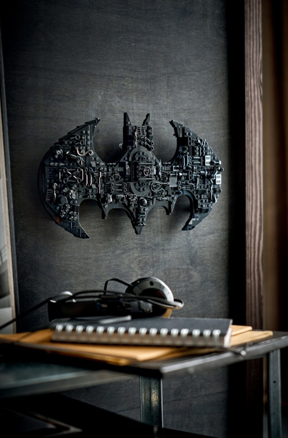 本作一共有 678 片零件,組裝完成之後可以得到一個細節滿滿、長約 36 公分的黑色蝙蝠標誌。除了可以很直接地感受到各式零件於表面堆砌帶來的層次感之外,還藏了蝙蝠飛鏢、鉤爪槍、哈莉·奎茵的大槌、企鵝人的禮帽跟雨傘、貓女的長鞭、謎語人的帽子,以及讓人聯想到毒藤女的黑色植物零件......等元素,相當有意思!