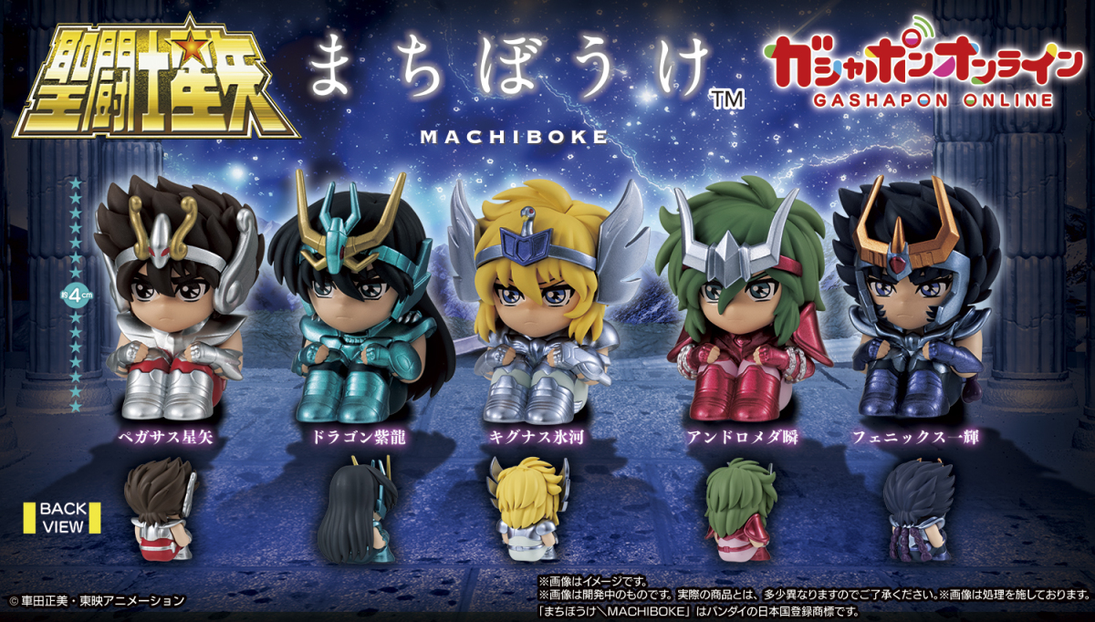 GASHAPON『等待中的聖鬥士星矢』轉蛋,將劇中人氣角色採用轉蛋小尺寸可愛重現,收錄有:天馬座星矢、天龍座紫龍、天鵝座冰河、仙女座瞬、鳳凰座一輝!在 4 公分的尺寸中精緻還原聖衣的金屬質感塗裝和服飾的細節,生動的表情搭配雙手放在膝蓋上的動作,看起來無辜又無奈,充滿反差萌~讓人還沒入手就已經在敲碗快點出下一彈啦!