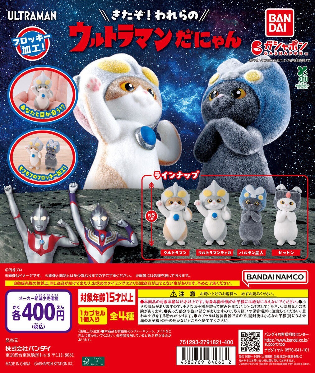 「超人力霸王喵~出擊!」 這次,喵星人變身『『超人力霸王喵』轉蛋,讓貓咪們穿上超人力霸王角色的裝扮,使用蓬鬆的植絨來呈現毛毛感,打算用可愛死人的肉球攻勢擊潰你的錢包!收錄有超人力霸王、超人力霸王迪卡,以及怪獸巴爾坦星人與傑頓,胸口的計時器細節也沒有馬虎!