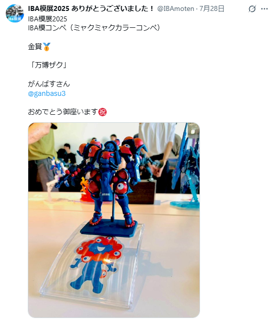 這款「脈脈軍警薩克」,がんばすさん在七月舉辦的日本 IBA 模型展中,參加了「脈脈配色」模型比賽,拿到了金賞(第一名)!