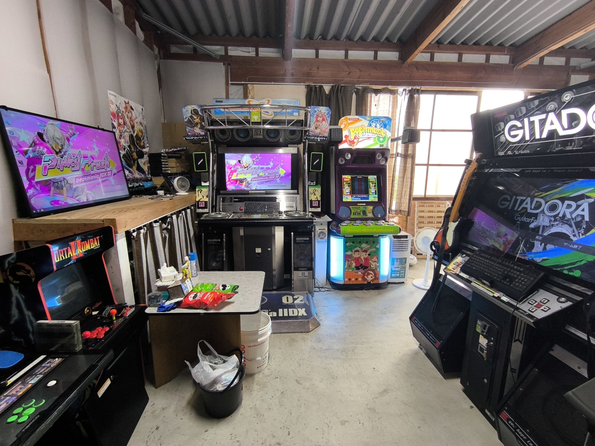 推主りむにょん(@gouman_rche)在自宅後方的車庫進行大改造,打造出一個完全不輸外面電玩店的「家用遊樂場」。