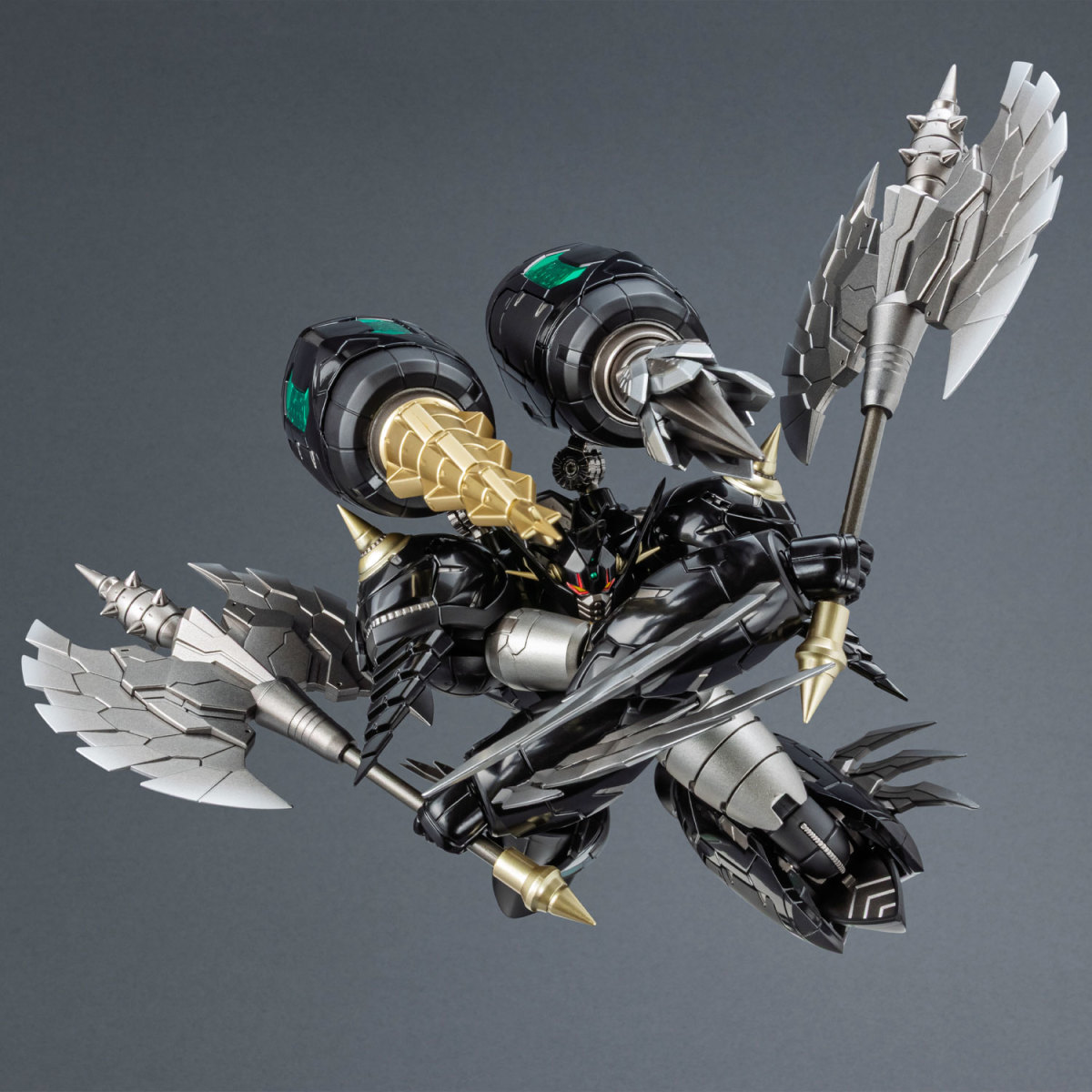 而這次的「真蓋特飛龍 黑色VER.」更在 DYNAMIC PLANNING 的監修下設計出彷彿黑蓋特的原創配色,基於過去發售的一般版修改而來,全身施以消光黑、光澤黑等色彩塗裝表現漆黑身軀,並搭配表現蓋特線與內構造型的透明區塊。商品也替換了部分新規造型零件,頭部製作出與「黑蓋特」同款金屬面罩、追加伸出尖刺的手掌零件。