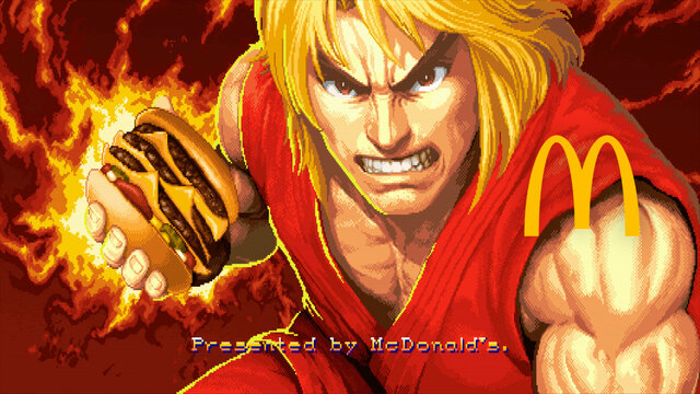另外也預告將從 10 月 21 日起,特製電視廣告將會上線。畫面採用經典的《快打旋風II》風格畫面,透過遊戲畫面來宣傳自家聯名漢堡。