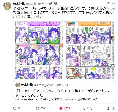 這次睽違近四年的新篇章上線後,X 上立刻湧入粉絲留言:「沒想到辣妹子可以回歸!」、「連載重啟太開心了!」