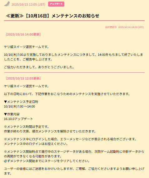 沒想到昨日 ( 10/16 ) 官方宣布《公主踢騎士 Sweets》將於 2026 年 1 月 30 日 結束遊戲營運。官方已停止販賣遊戲內所有付費道具,並公布了直到結束服務之前的活動規劃。
