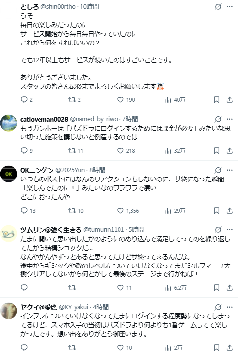 並補充道:「感謝各位玩家這 13 年來的支持與陪伴。距離結束營運還有約 3 個月的時間,我們也會在遊戲內舉辦各種活動,讓大家能玩到最後一刻都盡興。」