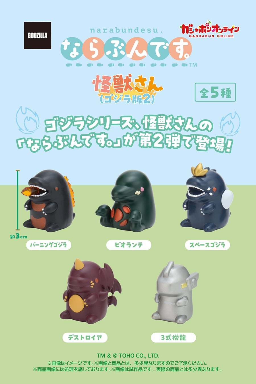 日本萬代公司轉蛋事業部 GASHAPON 旗下的「排排站(ならぶんです)」系列,繼哥吉拉主題「怪獸排排站(哥吉拉版)」後,好評再推出第二彈:「怪獸排排站(哥吉拉版2)」轉蛋,共有五種款式,參考售價為一轉 300 日圓,預計於 2026 年 02 月開轉!